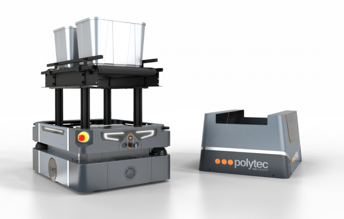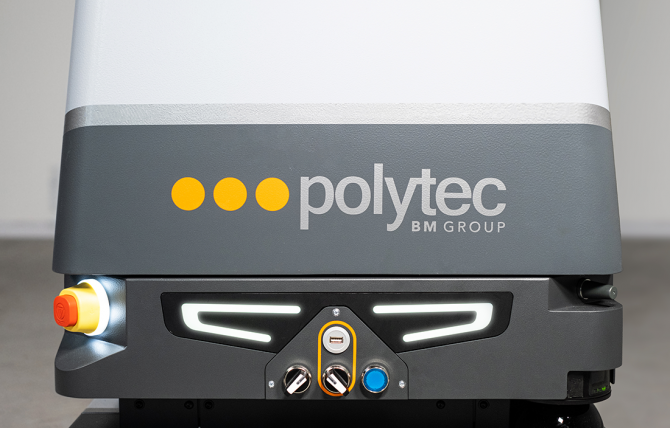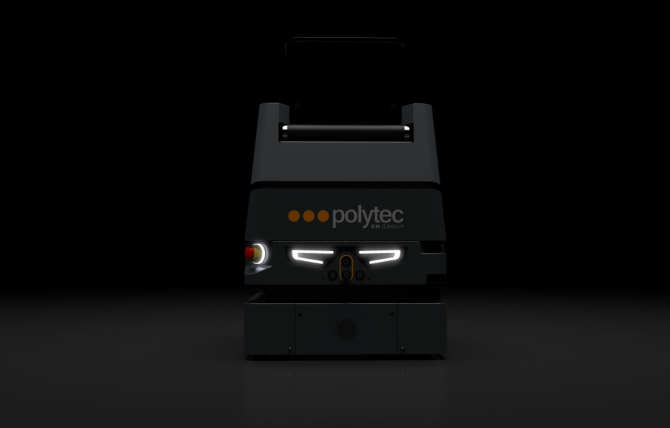 Es handelt sich um VOYAGER 50, den neuen AMR (Autonomous Mobile Robot), der in Zusammenarbeit mit Polytec Intralogistics entwickelt wurde.