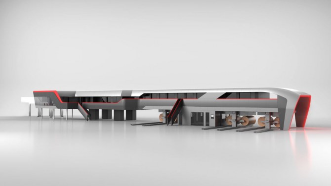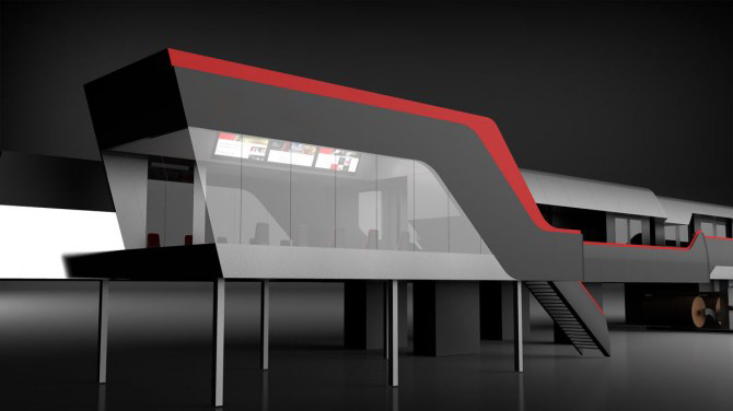 The control room is integrated with the structure through the use of external colour coatings