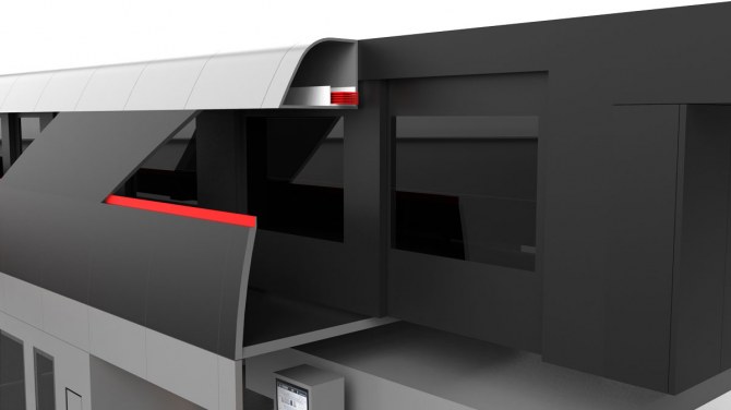 The external aesthetic elements, on the other hand, are used as ducts for electric cables or steam extraction pipes. The part underneath is also designed to house the LED walkway lighting for the operator or indicate the machine operating status.