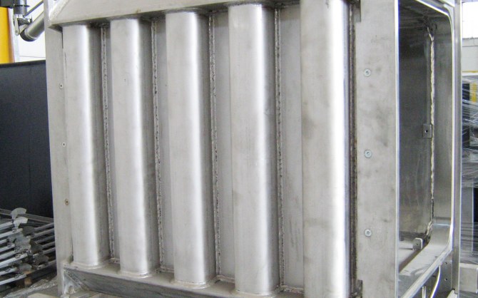 La struttura della cabina in carpenteria leggera è realizzata in acciaio inossidabile spesso 8 mm, questa caratteristica richiede operazioni complesse di pressopiegatura della lamiera.